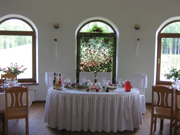 Svečių namai Mednieku pirts. Senovinėje banketų salėje jūs galite atšvęsti savo vestuves, jubiliejų, gimimo dieną arba kitas šeimynines šventes.